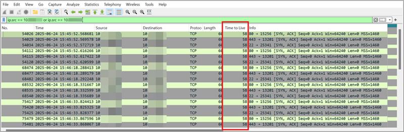 By analyzing packet captures, you can see that the IP ID and TTL values are consistent across all packets. This strongly indicates that the firewall is responding to the target, a conclusion that can only be reached through packet capture analysis.