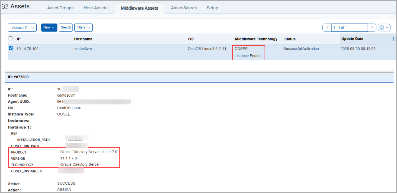 If you are using Cloud Agent for Policy Compliance (PC), the Cloud Agent auto-discovers Oracle Directory Server. When an agent scan detects an Oracle Directory on a host, it is displayed on the PC > Assets > Middleware Assets.