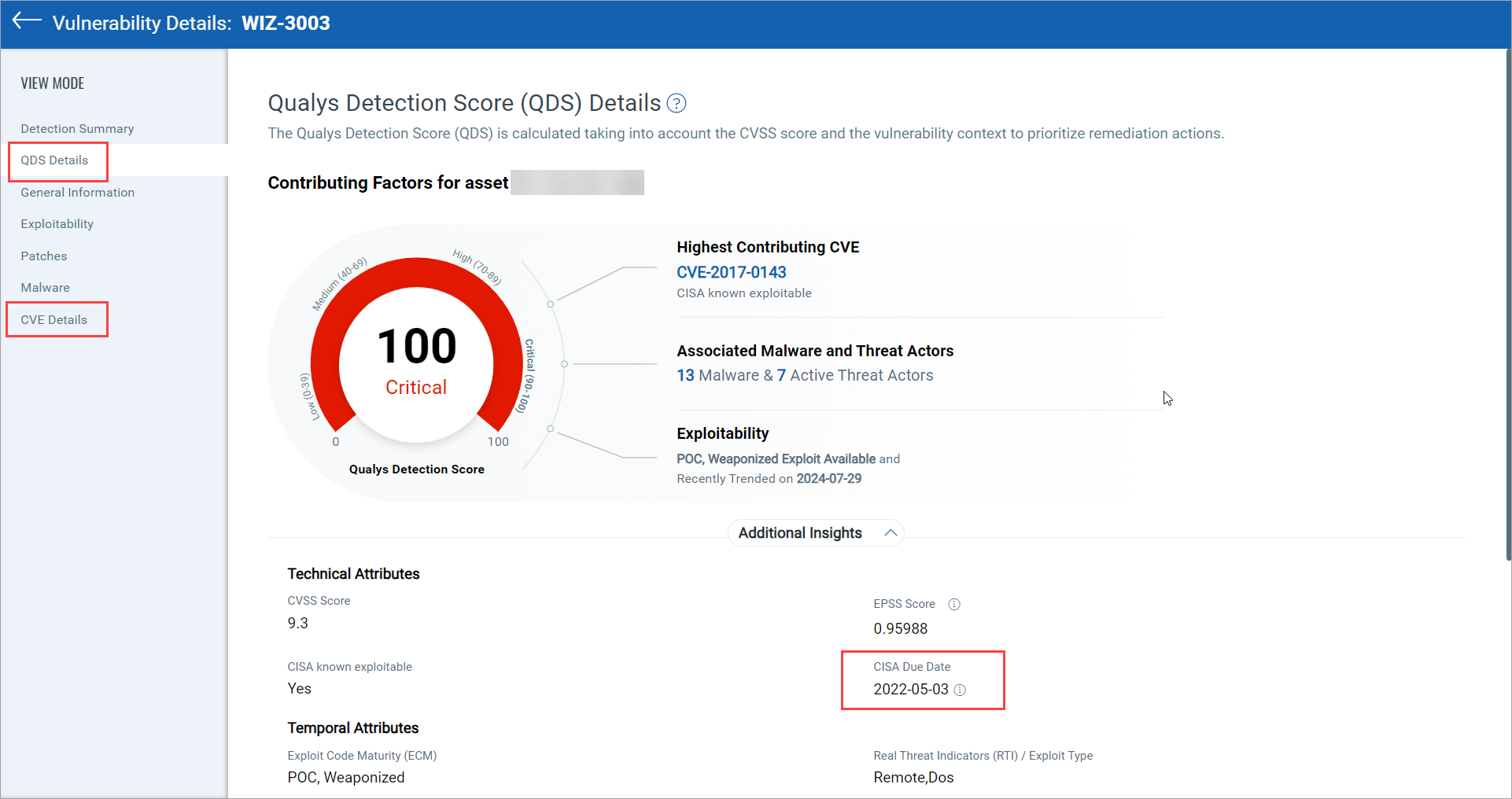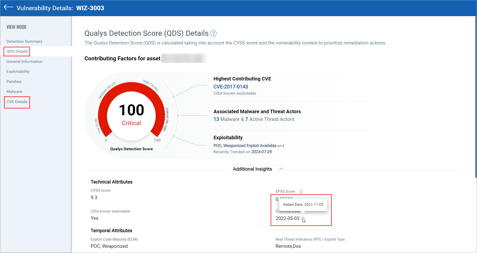 - CISA Due Date: The recommended deadline for remediation, as specified by CISA to reduce exposure to active exploitation.