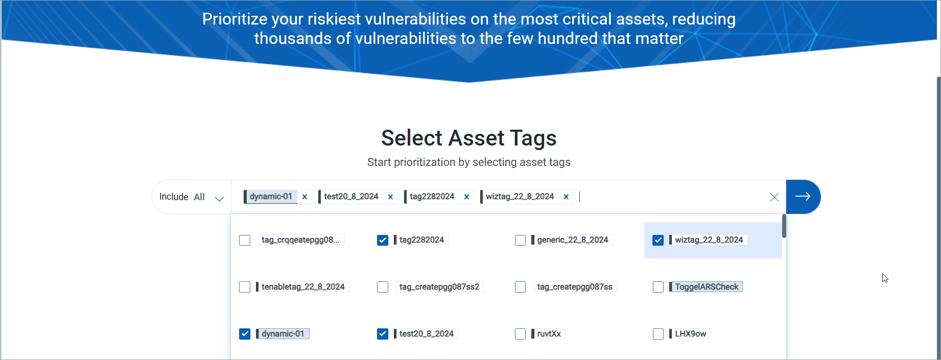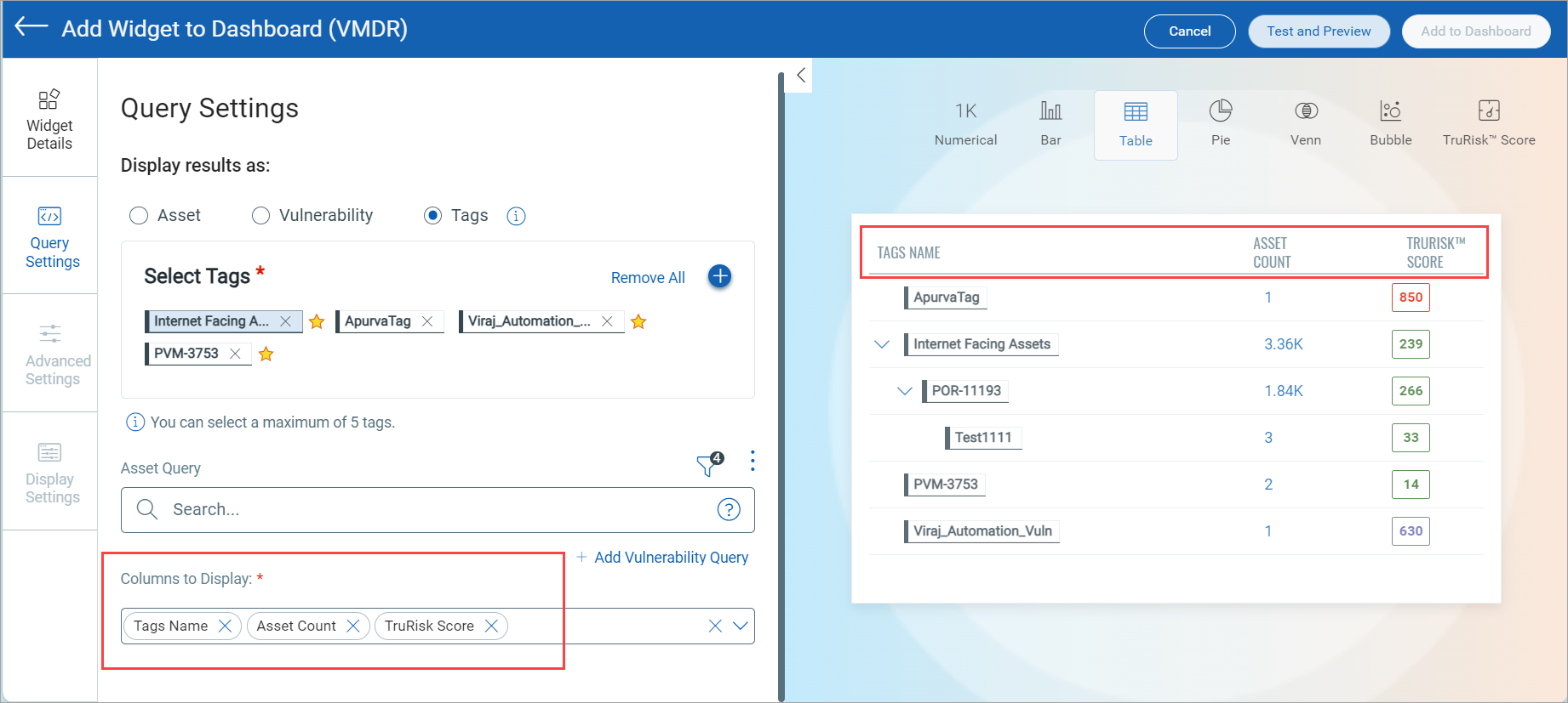 Tags Name, Asset Count, TruRisk™ Score