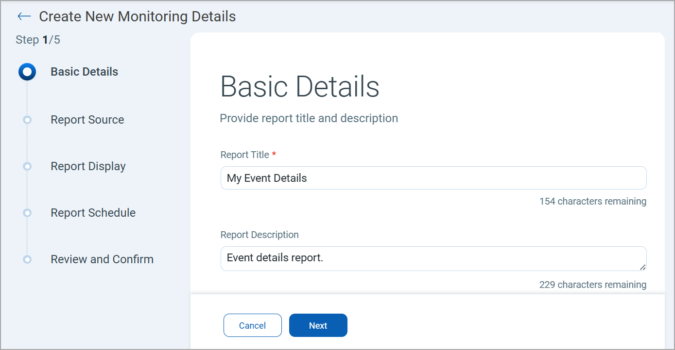 - Enter the Report Title and Report Description.