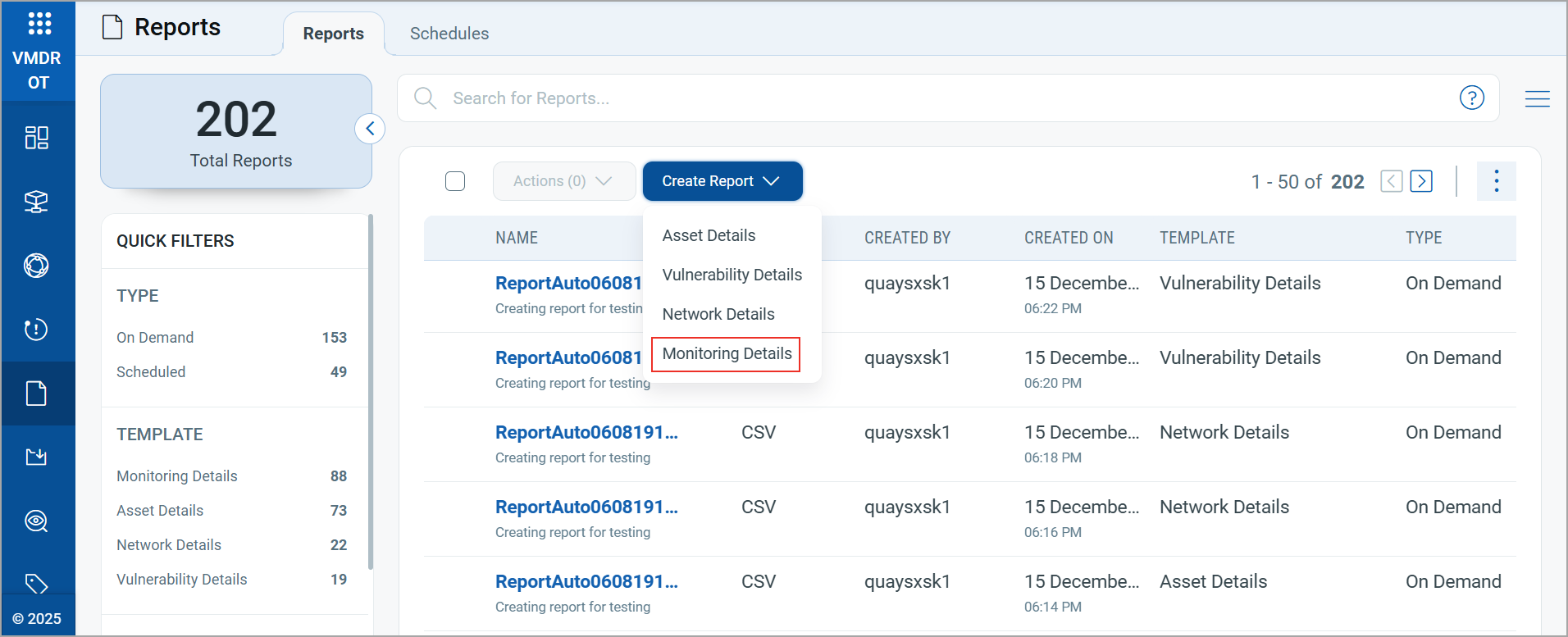 - Click Create Report and select a Monitoring Details from the list.