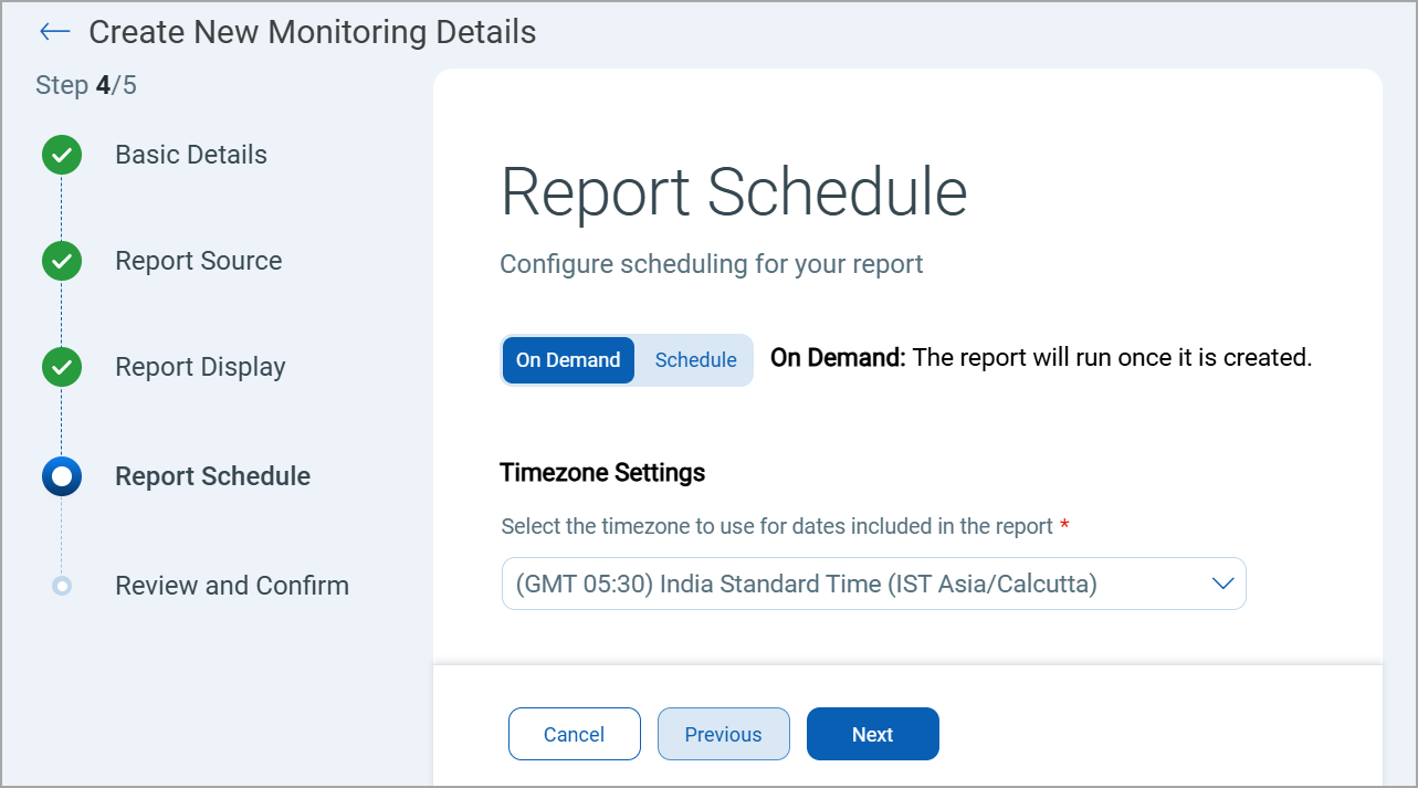 - On the On Demand tab, select the required Timezone and click Next.