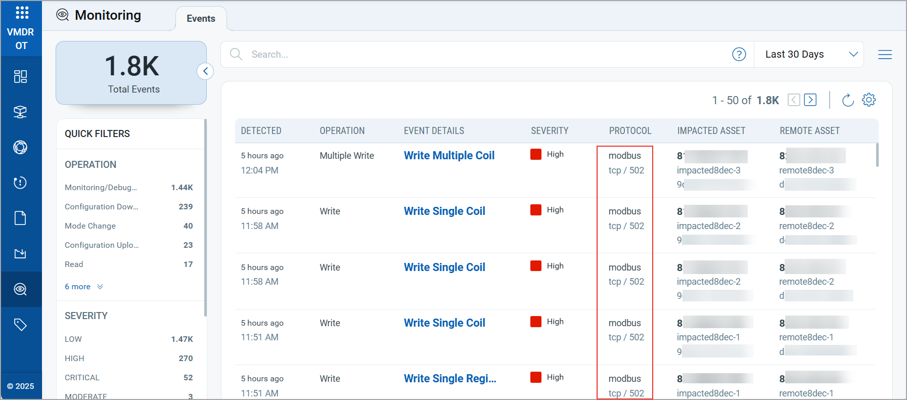 This enhancement enables you to monitor Modbus-based communication between impacted and remote assets to identify any deviations from the expected behavior.