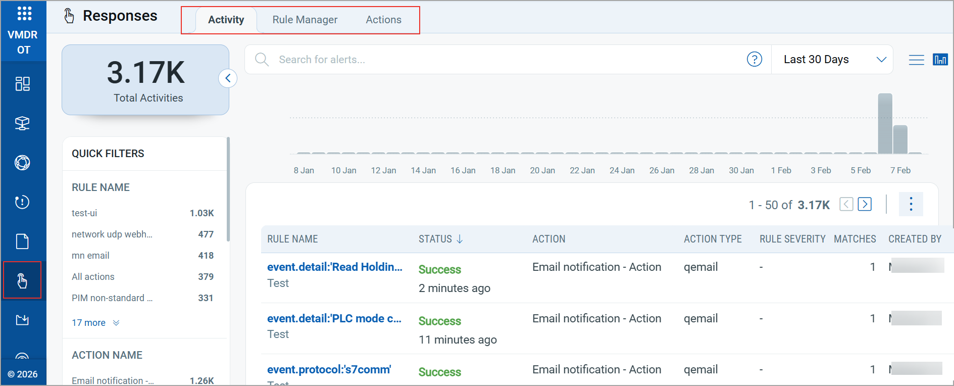 We have introduced the new Responses tab in VMDR OT to provide a centralized interface for configuring, managing, and monitoring alerts.