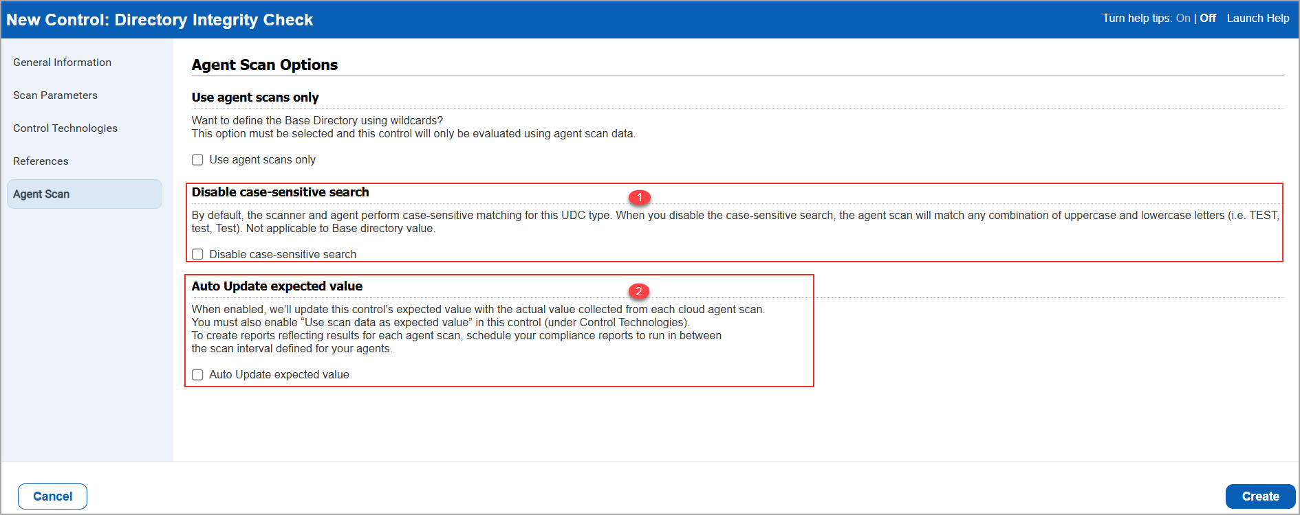Directory Search Check and Directory Integrity Check - the "Use agent scans only" option lets you specify that the control is only evaluated using agent scans.