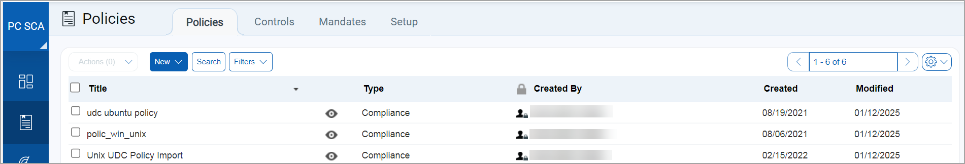 Note: Users with SCA accounts can activate or deactivate Policies.