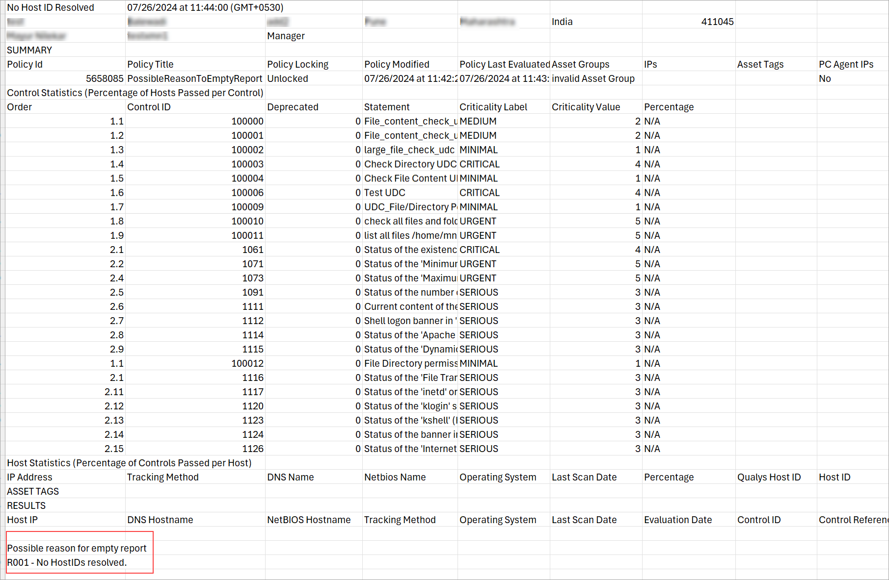 The limit for displaying Extended Evidence and Actual result in the Policy report for Active Directory (AD) SDC (System Defined Controls) has been increased to 100000 rows. Previously, the limit was 5000 rows, which resulted in incomplete data being displayed in the Extended Evidence and Actual result sections. The enhanced data limit of 100000 rows now allows the full extended evidence and actual data to be displayed in the Policy report. To learn more about extended evidence and actual result, refer to Policy Audit Reporting- The Basics. This enhanced data limit only applies to AD SDCs. For other SDCs, the limit is 5000 rows. Note: Contact Qualys support to enable this feature for your subscription. |