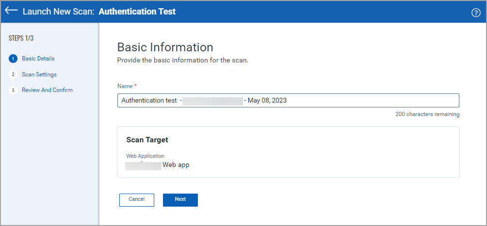 Note - Authentication test can be only configured for a single scan. You cannot configure an authentication test for a multi-scan or a scheduled scan.