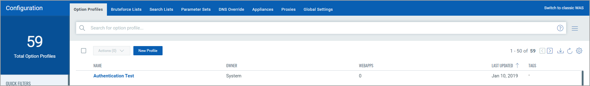 You can choose the authentication record to be tested in the Authentication section and configure other settings similar to scan settings. As this is a quick authentication test, only few and not all scan settings need to be configured. Being a quick scan, we use system generated (non-editable) option profile named as Authentication Test.